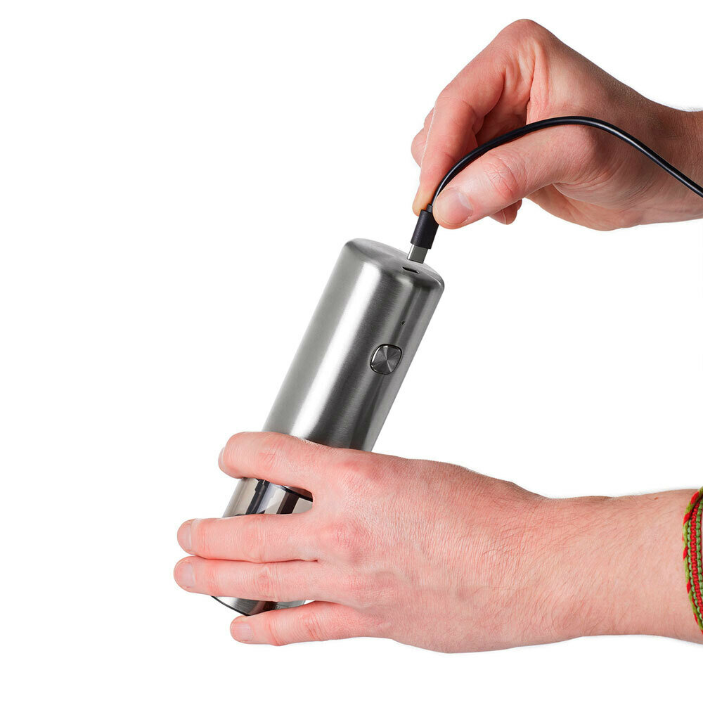 Электронные мельницы более практичны и не требуют приложения сил. Они работают от небольшого мотора, который запускает вращение жерновов. Подобная технология дает возможность быстро измельчить большое количество соли или перца до самого мелкодисперсного состояния.