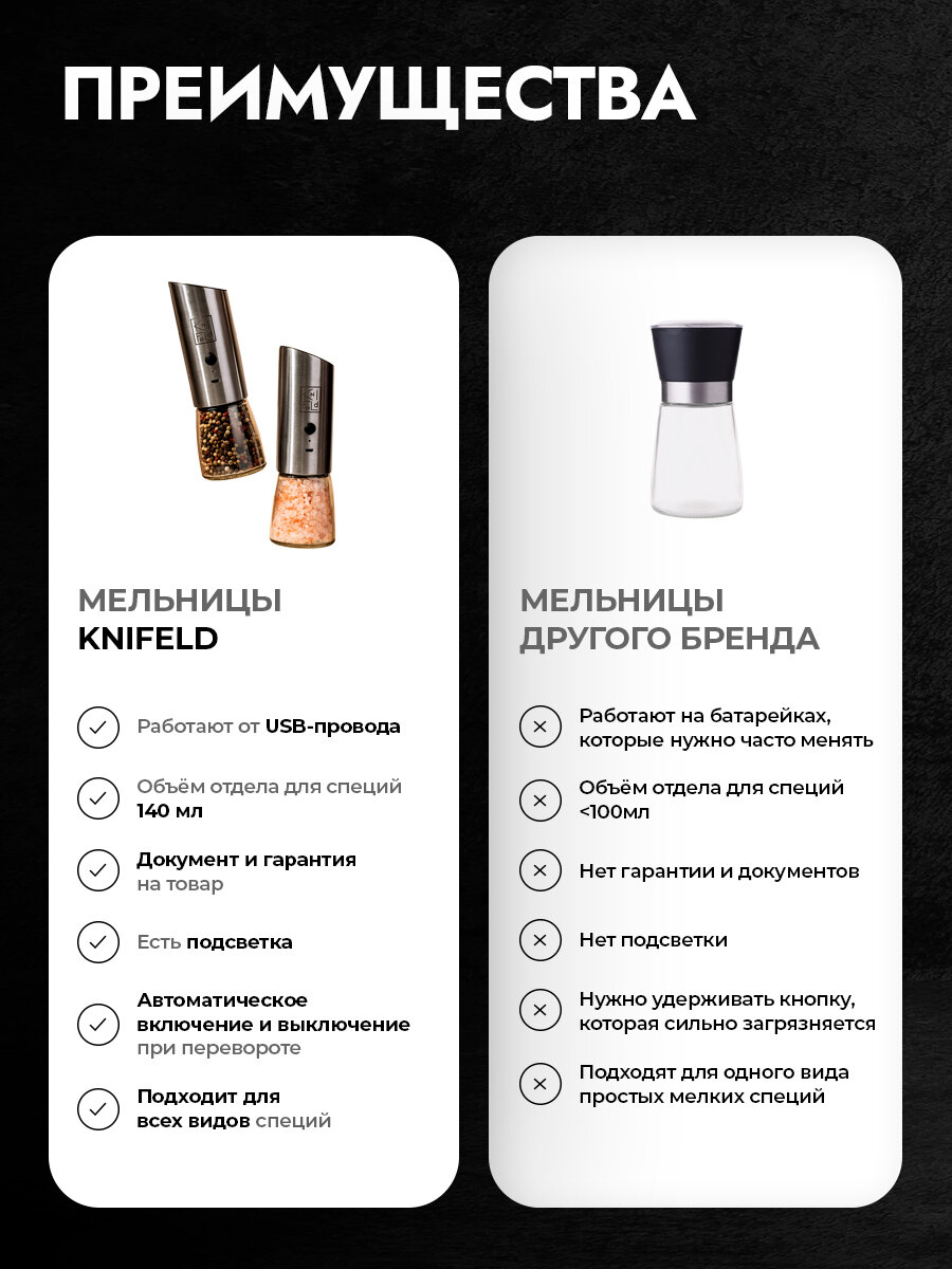 Набор электрических мельниц Knifeld c подсветкой и деревянной подставкой, 3 режима помола: сравнение цен, характеристики, фото, актуальное наличие и цены.