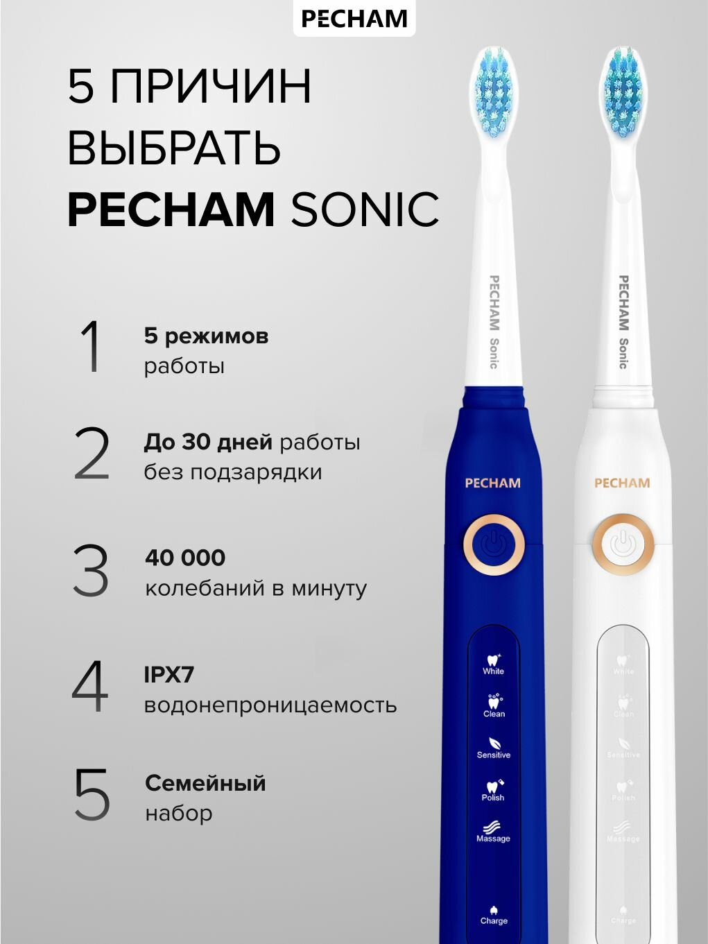 Купить Набор электрических зубных щеток PECHAM Sonic 2в1 PC-3113, подарок с доставкой по всей России. Набор электрических зубных щеток PECHAM Sonic 2в1 PC-3113, подарок: сравнение цен, характеристики, фото, актуальное наличие и цены.