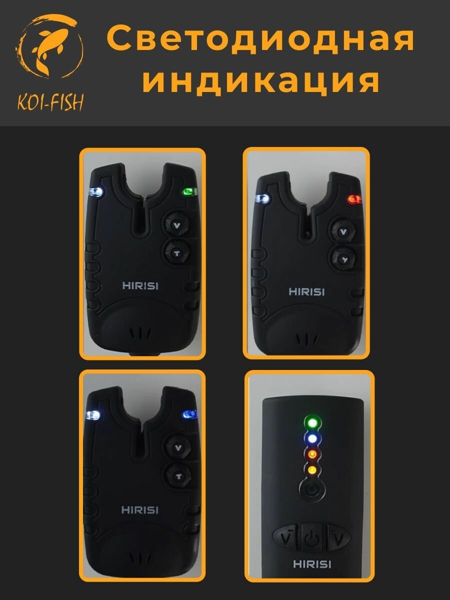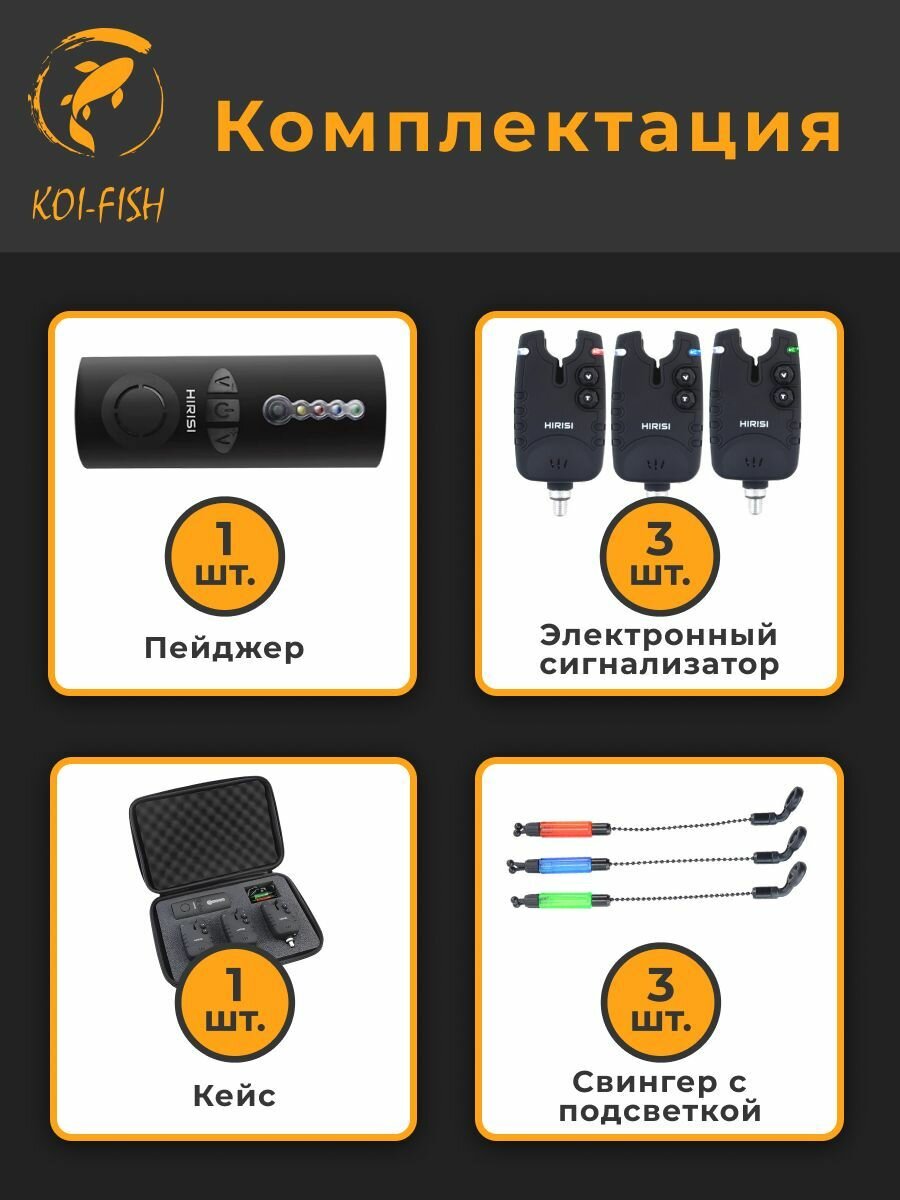 Набор электронных сигнализаторов поклёвки 3+3+1 (электронный сигнализатор 3 шт + свингер 3 шт + пейджер) / Электронный сигнализатор клёва / индикатор поклевки / датчик клева / Свингер / Электронный детектор поклёвки / Светодиодный Индикатор / Звуковой
