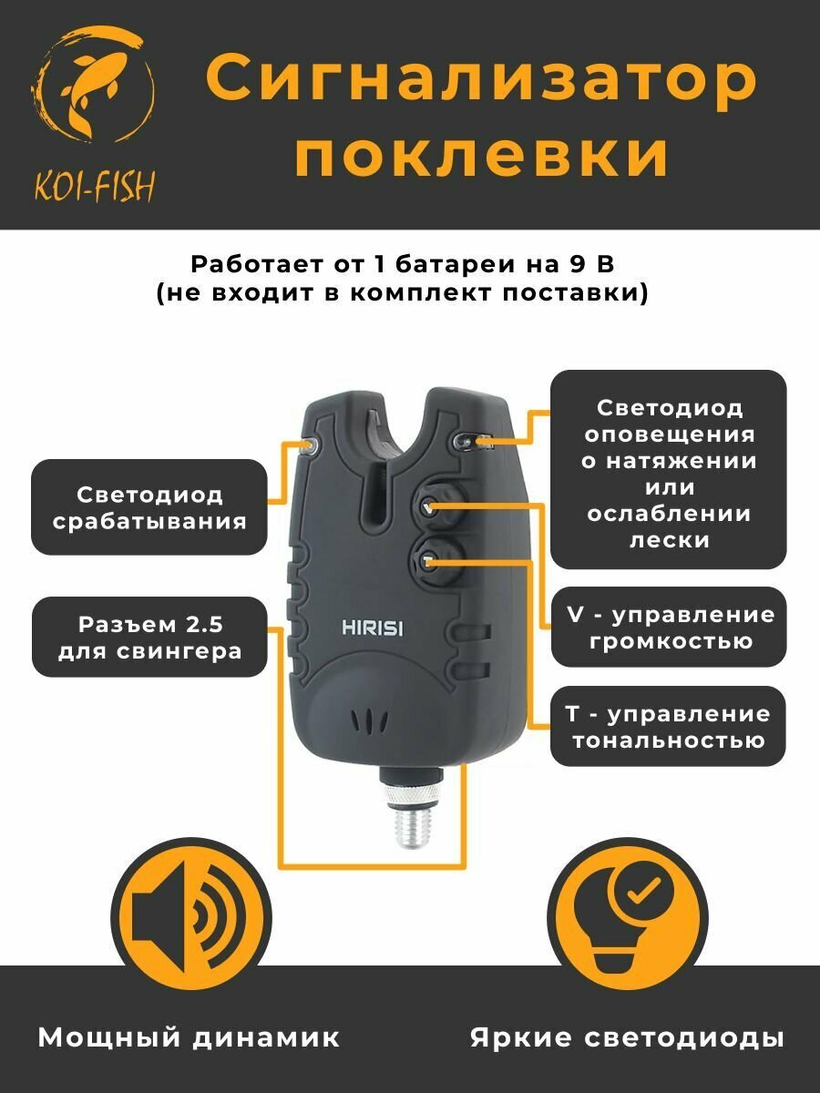 - -Светодиодные индикаторы поклевки с мощным динамиком
