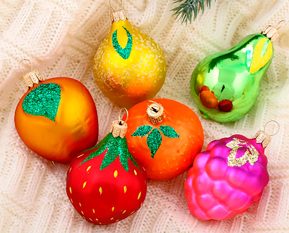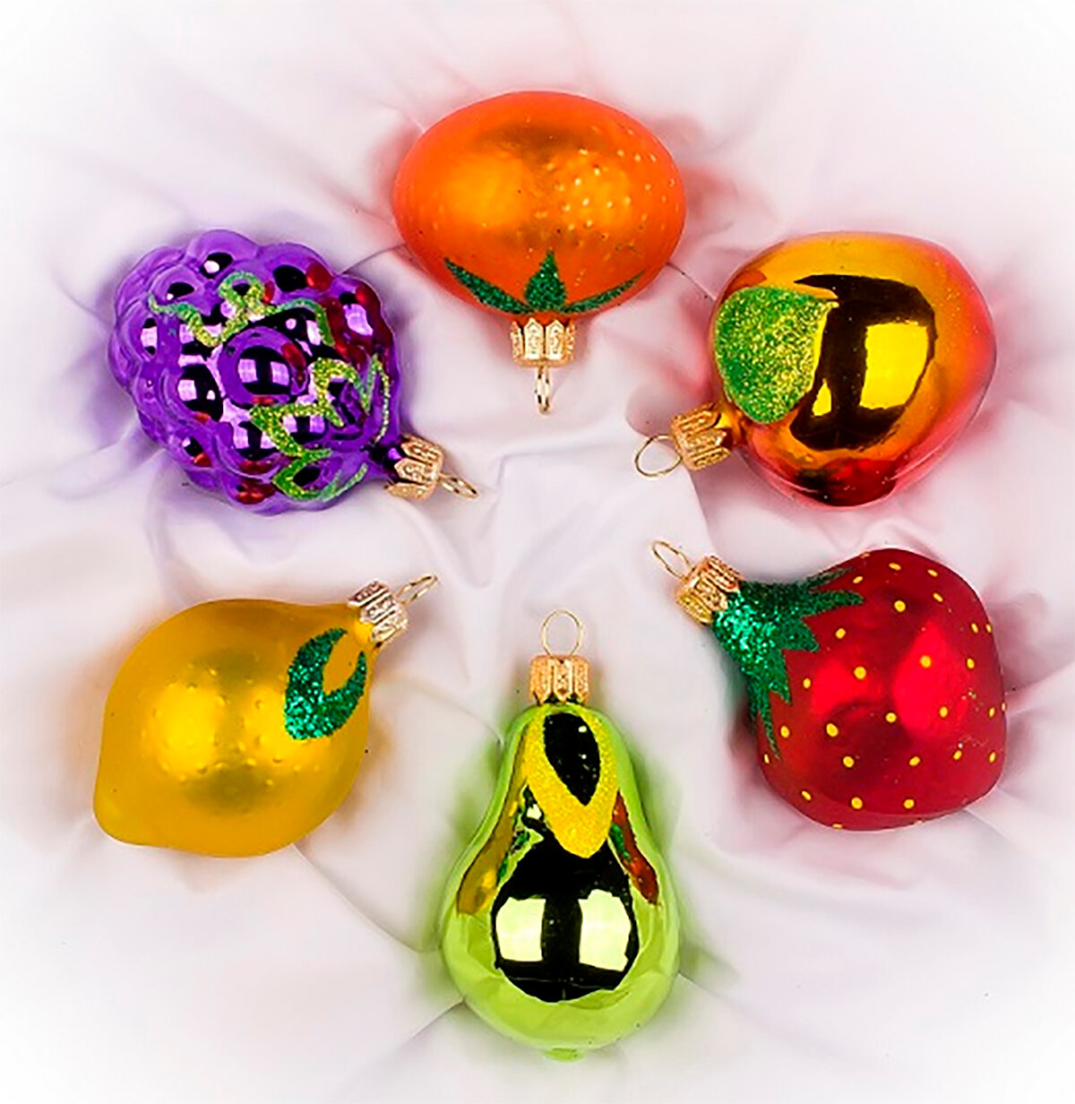 Набор елочных игрушек "Фрукты", стекло, ручная роспись, 6 штук