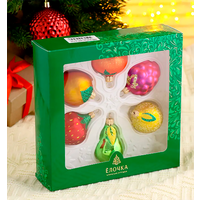 Набор елочных игрушек «Фрукты», стекло, ручная роспись, 6 штук