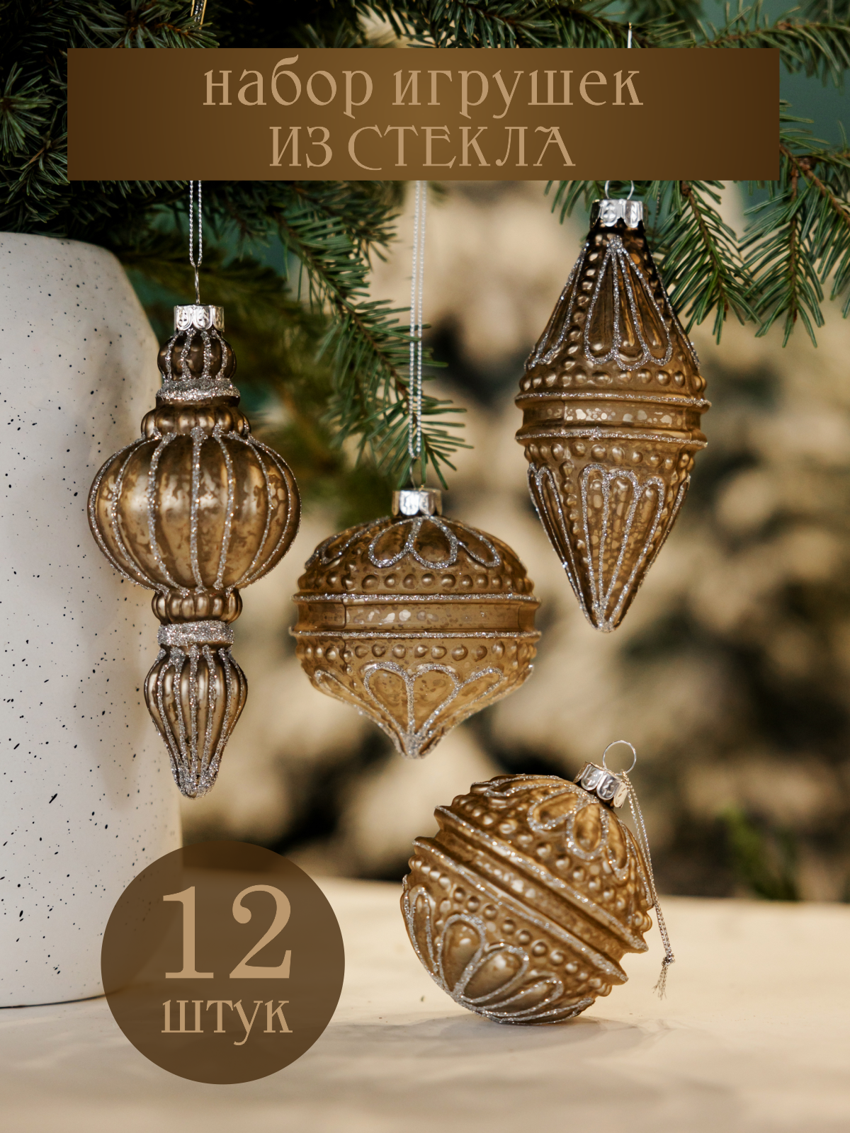 Стеклянные елочные игрушки бронзовые состаренные набор 12шт.: сравнение цен, характеристики, фото, актуальное наличие и цены.