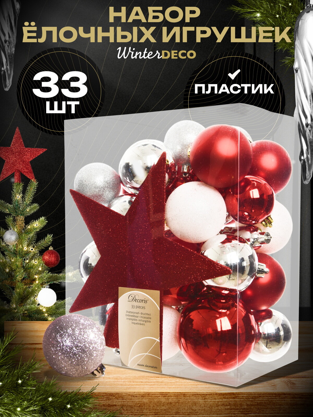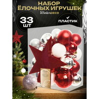 Набор елочных шаров с верхушкой Классический Дуэт 33 предмета, красный с серебром, Kaemingk, 023324: сравнение цен, характеристики, фото, актуальное наличие и цены.