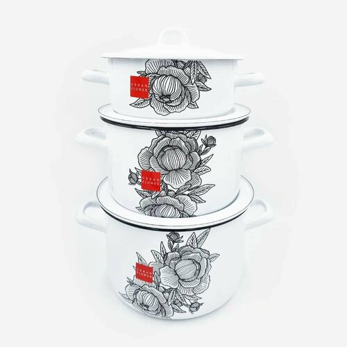 Купить Набор эмалированных кастрюль 1,45л,2,9л,4,3л Urban flower Лысьвенские эмали с доставкой по всей России.