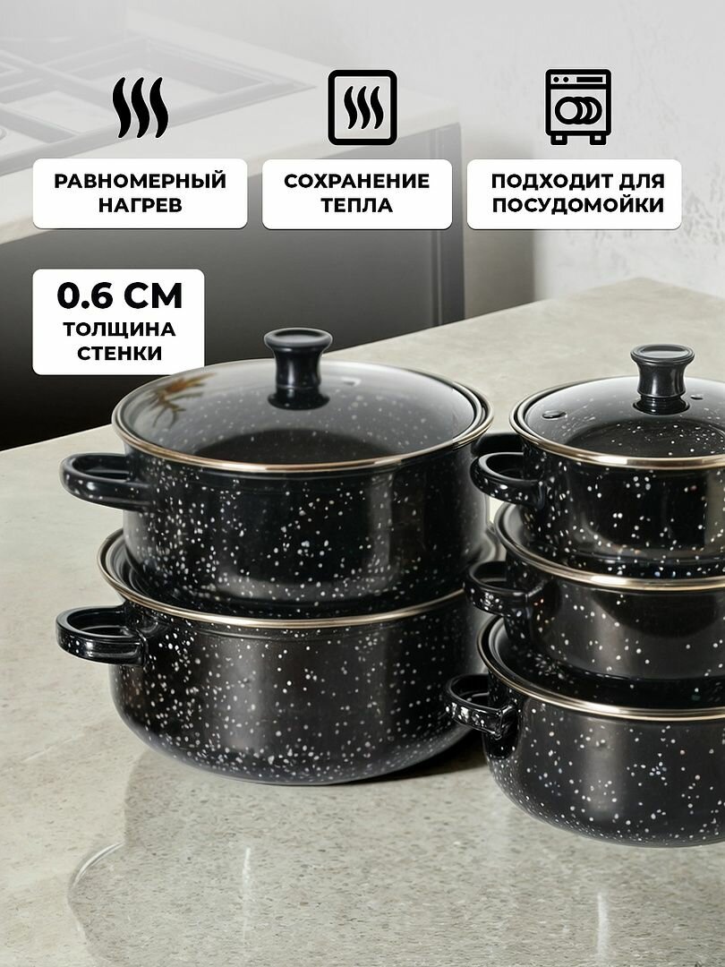 Купить Набор эмалированных кастрюль с крышками , 5 штук с доставкой по всей России. Набор эмалированных кастрюль с крышками , 5 штук: сравнение цен, характеристики, фото, актуальное наличие и цены.