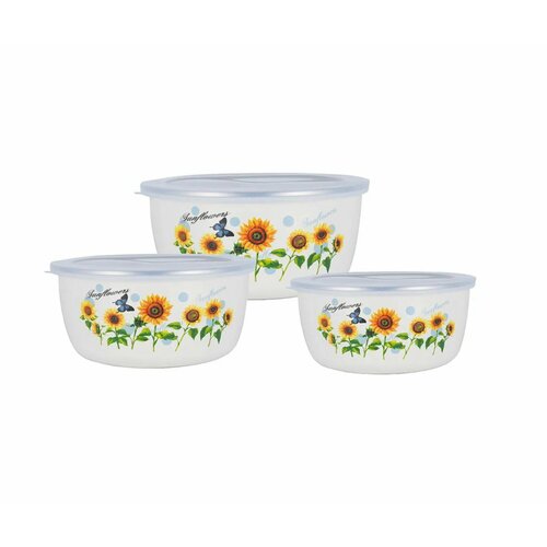 Набор салатников с крышкой Zeidan Z-80625-03 подсолнухи, практичный и функциональный. Миски эмалированные с крышкой идеально подходят для хранения и транспортировки еды, а также для приготовления в духовке и на любой плите (без крышки!). Миски для кухни стальные, крышки из пластика. Этот практичный набор мисок прослужит долго. Набор мисок с крышками проверен на качество во время производства, надежен и безопасен. Набор включает 3 миски для кухни разных объемов: салатницы 0,7 л и 1 л, салатник большой и 1,7 л; с диаметрами 14, 16 и 18 см. Миски для еды – это прекрасная походная посуда, отличные контейнеры для хранения пищи в холодильнике. Набор мисок с крышками можно взять с собой на природу, для пикника (походная кухня) или использовать как контейнеры для еды, ланч-боксы в школу или в офис. Миска эмалированная не впитывает и не выделяет запахов, не изменяет вкуса пищи, может применяться как посуда для холодца, емкость для холодца. Миски для кухни легко моются вручную с моющими средствами для посуды или в посудомоечной машине. Миска эмалированная с крышкой может послужить как контейнер для холодильника с крышкой. Миска для салата – удобная туристическая посуда. Салатники – то, что нужно, если планируется отдых на природе. Набор эмалированных мисок с крышками поставляется в подарочной коробке, поэтому это будет отличный подарок подруге и родным по любому поводу.