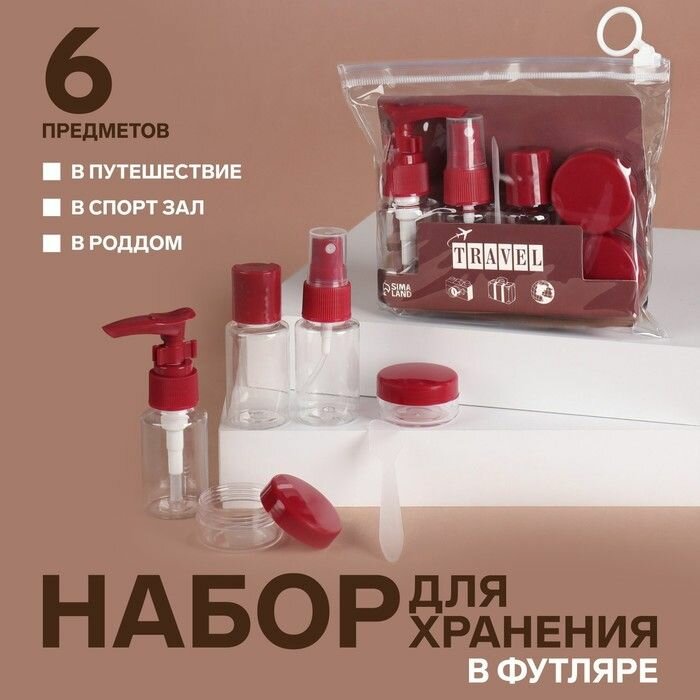 Купить Набор емкостей для хранения ONLITOP в чехле, 6 предметов, цвет прозрачный/бордовый с доставкой по всей России.