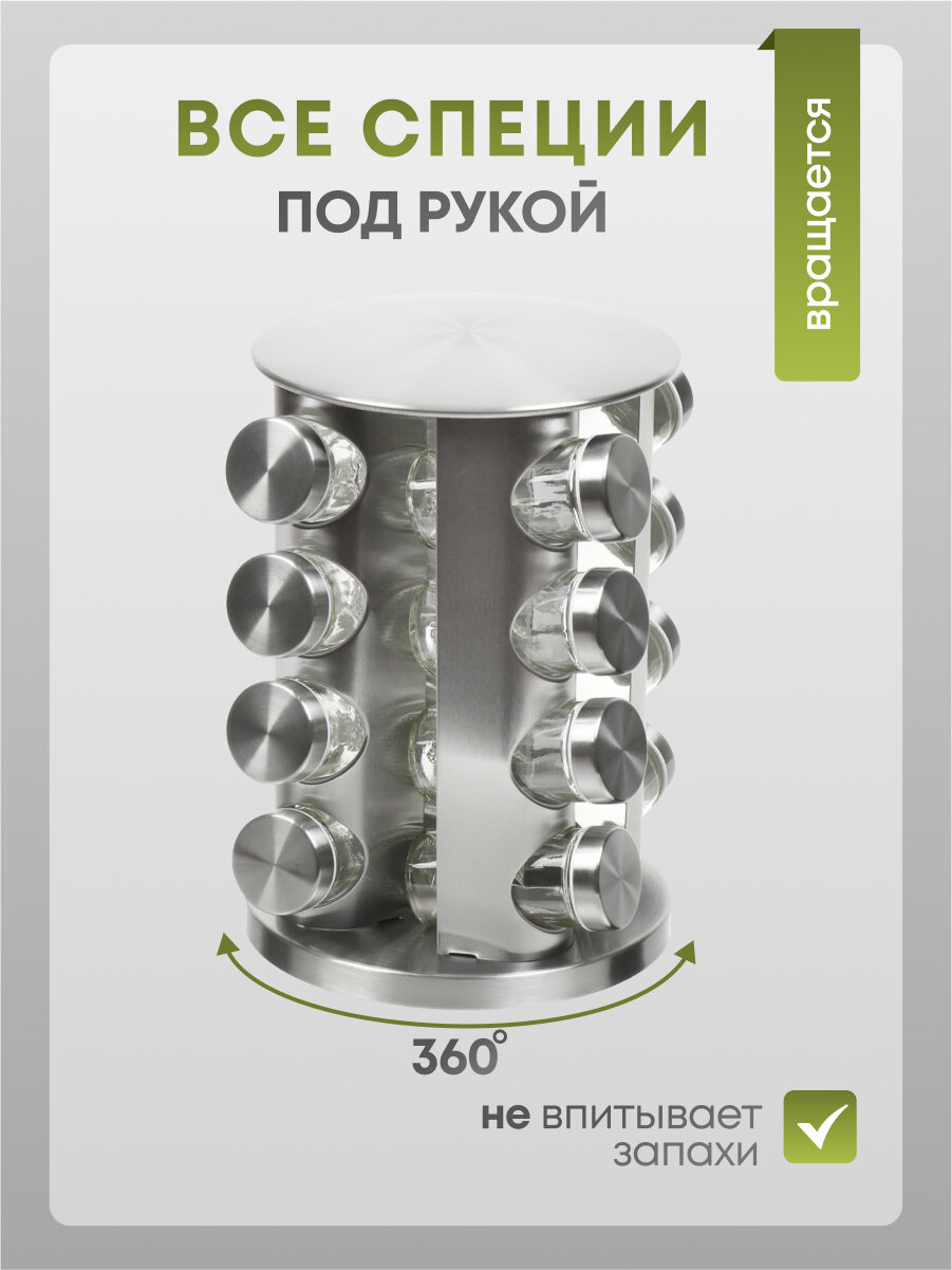 Набор емкостей для специй стекло и нержавеющая сталь, 16 шт, на подставке, серебристый, Y4-5661: сравнение цен, характеристики, фото, актуальное наличие и цены.