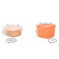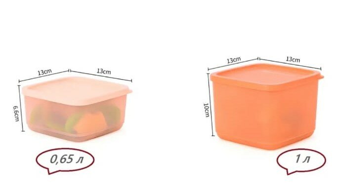 • Набор состоит из прямоугольных контейнеров различного объема. К каждому изделию прилагается крышка для хранения.