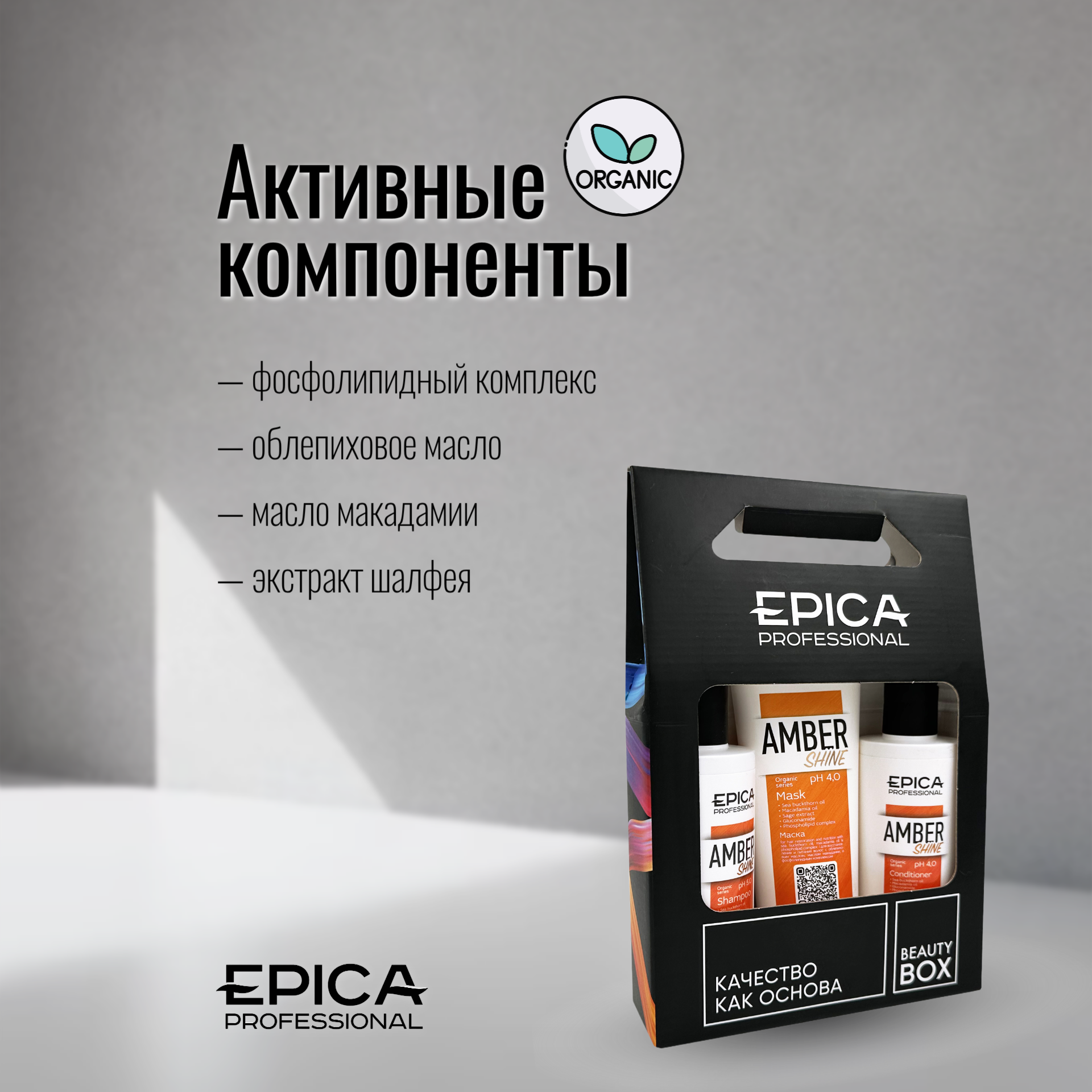 Купить Набор Epica Amber Shine Organic (шампунь 250мл + кондиционер 250мл + маска 250мл) с доставкой по всей России.