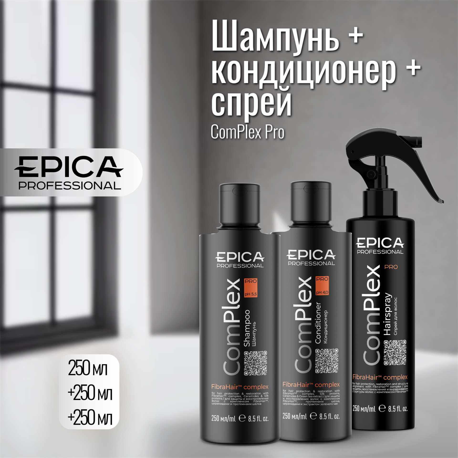 Купить Набор Epica ComPlex Pro (шампунь 250мл + кондиционер 250мл + спрей 250мл) с доставкой по всей России. Набор Epica ComPlex Pro (шампунь 250мл + кондиционер 250мл + спрей 250мл): сравнение цен, характеристики, фото, актуальное наличие и цены.