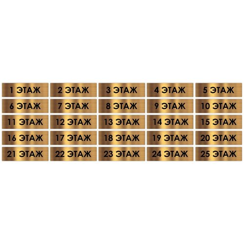 Купить Набор этажных табличек с 1 по 25 этаж Standard 250*75*1,5 мм. Золото с доставкой по всей России. Набор этажных табличек с 1 по 25 этаж Standard 250*75*1,5 мм. Золото: сравнение цен, характеристики, фото, актуальное наличие и цены.