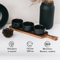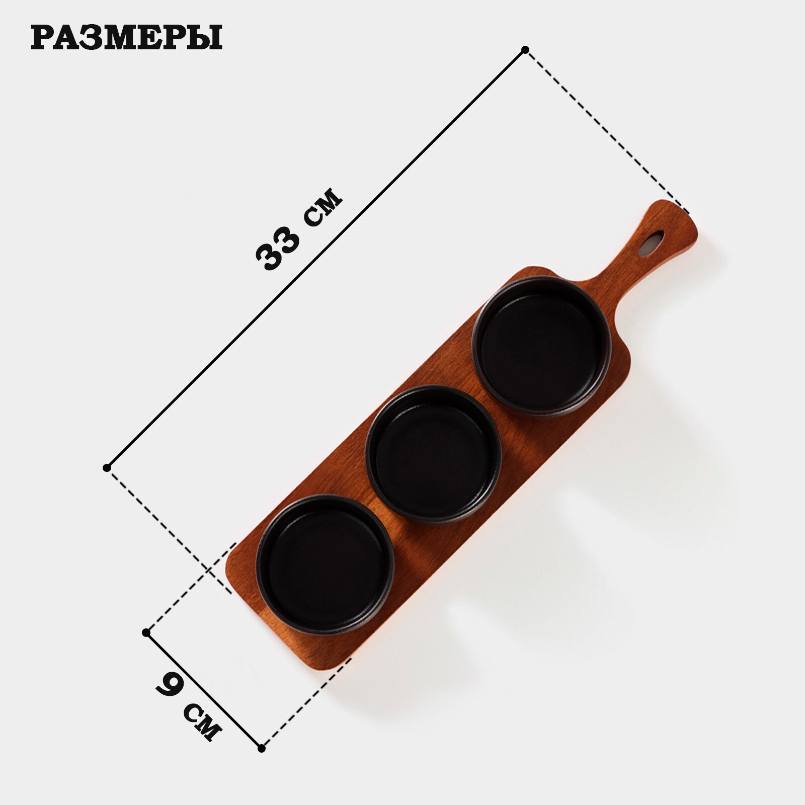 Деревянная подставка, входящая в комплект, обеспечивает удобство использования и хранения. Она не только придает набору эстетический вид, но и защищает соусники от повреждений.