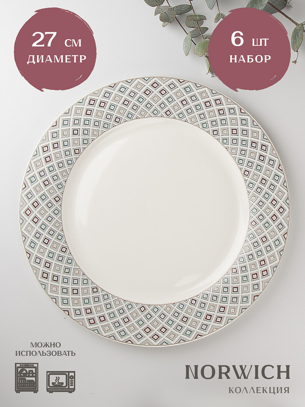 Купить Набор фарфоровых тарелок 6 штук «Norwich» 27см, Nouvelle, геометрия с доставкой по всей России. Набор фарфоровых тарелок 6 штук «Norwich» 27см, Nouvelle, геометрия: сравнение цен, характеристики, фото, актуальное наличие и цены.