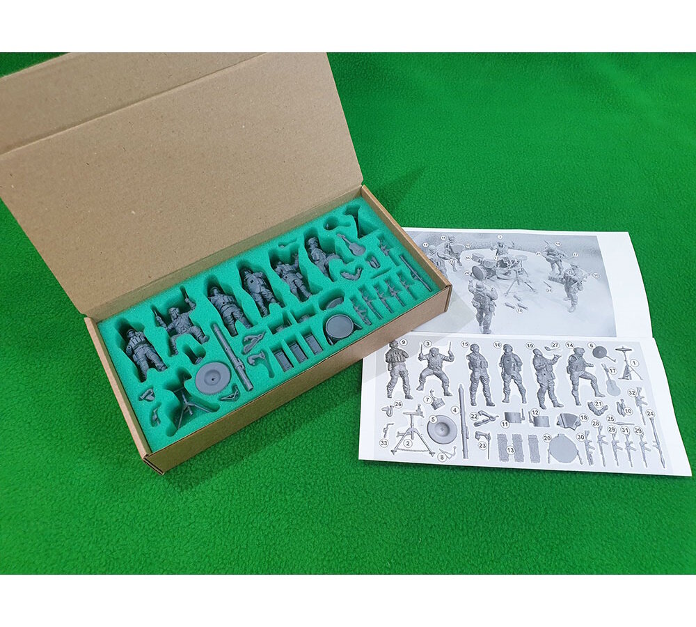 Набор высокодетализированных фигур (6 шт в комплекте) из фотополимерной смолы в масштабе 1/35. Для росписи рекомендуется использовать акриловые краски. Для склеивания рекомендуется использовать цианокрилатный клей. Обращаем ваше внимание, что фигурки из фотополимерной смолы требуют весьма бережного обращения ввиду хрупкости материала.
