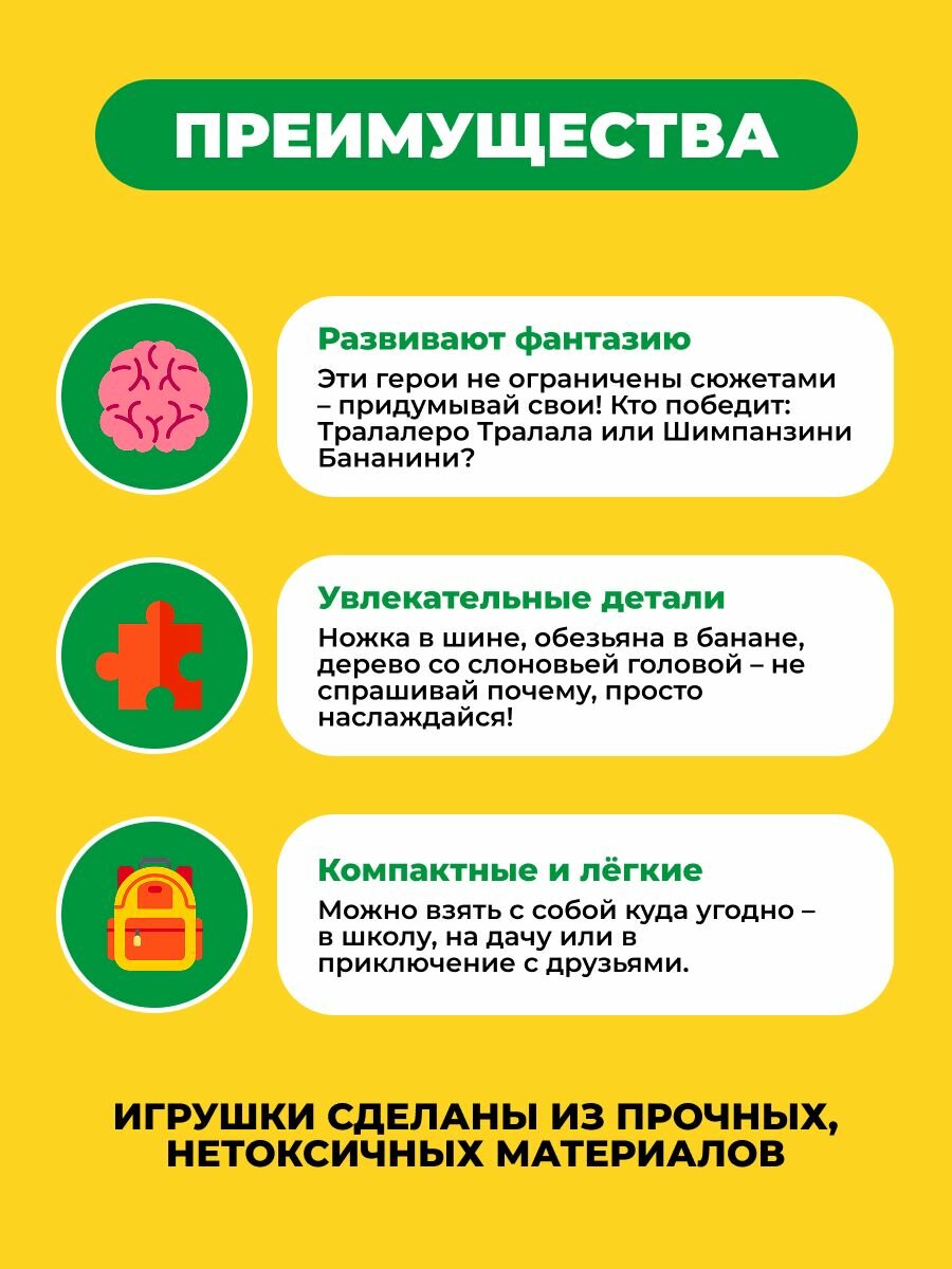 Набор фигурок персонажей итальянского брейнрота - тренд, который появился в социальной сети TikTok в начале 2025 года. Первым представителем мемных животных стала акула в голубых кроссовках Tralalero Tralala. Но за ним подтянулась целая армия. В этой вселенной уже больше 30 героев