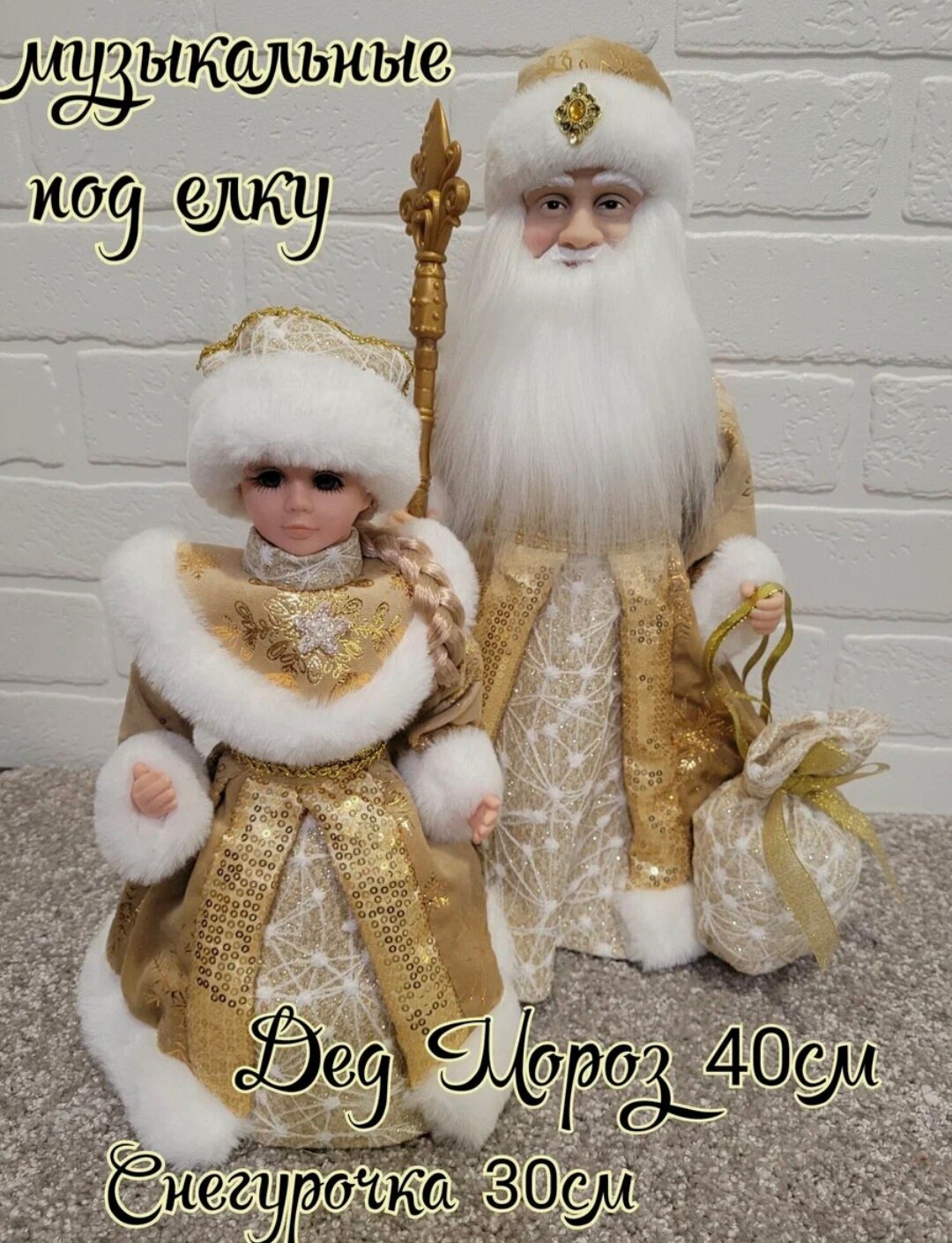 Купить Набор фигурок под елку Дед Мороз и Снегурочка, 40см и 30 см; музыкальные Дед Мороз и Снегурочка с доставкой по всей России.