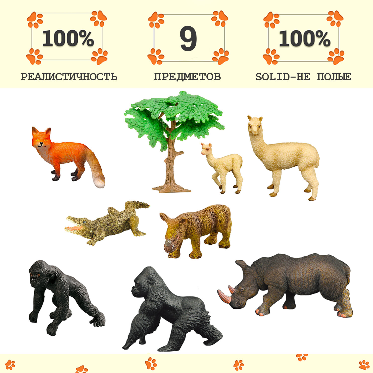 Купить Набор фигурок животных серии «Мир диких животных»: крокодил, 2 носорога, 2 ламы, 2 гориллы, лиса (набор из 9 предметов) с доставкой по всей России. Набор фигурок животных серии «Мир диких животных»: крокодил, 2 носорога, 2 ламы, 2 гориллы, лиса (набор из 9 предметов): сравнение цен, характеристики, фото, актуальное наличие и цены.