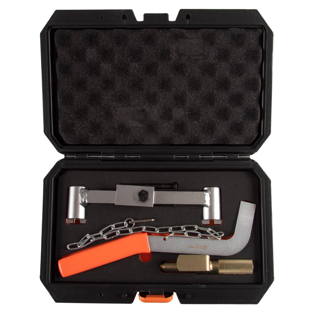 Материалы – инструментальная сталь, хром, цинк, ПВХ, пластик PE-HD (кейс)