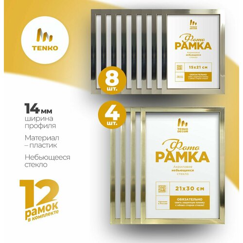 Набор фоторамок 12 шт золото, на стену В коробке (гарантия целости!) комплект из пластика, коллаж настенные, рамки для фото небьющиеся (21х30, 15х21), золотая, Tenko Decor ,12 шт: сравнение цен, характеристики, фото, актуальное наличие и цены.