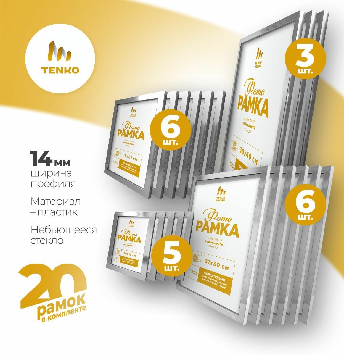 Набор фоторамок 20шт серебро на стену (гарантия целости!) рамки для фотографий, фоторамки для фотографий, комплект фоторамок, коллаж из фоторамок, фоторамки настенные, рамки небьющиеся (21х30, 15х21, 10х15, 30х40), Tenko Decor, 20 шт.: сравнение цен, характеристики, фото, актуальное наличие и цены.