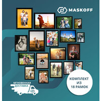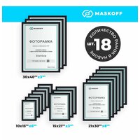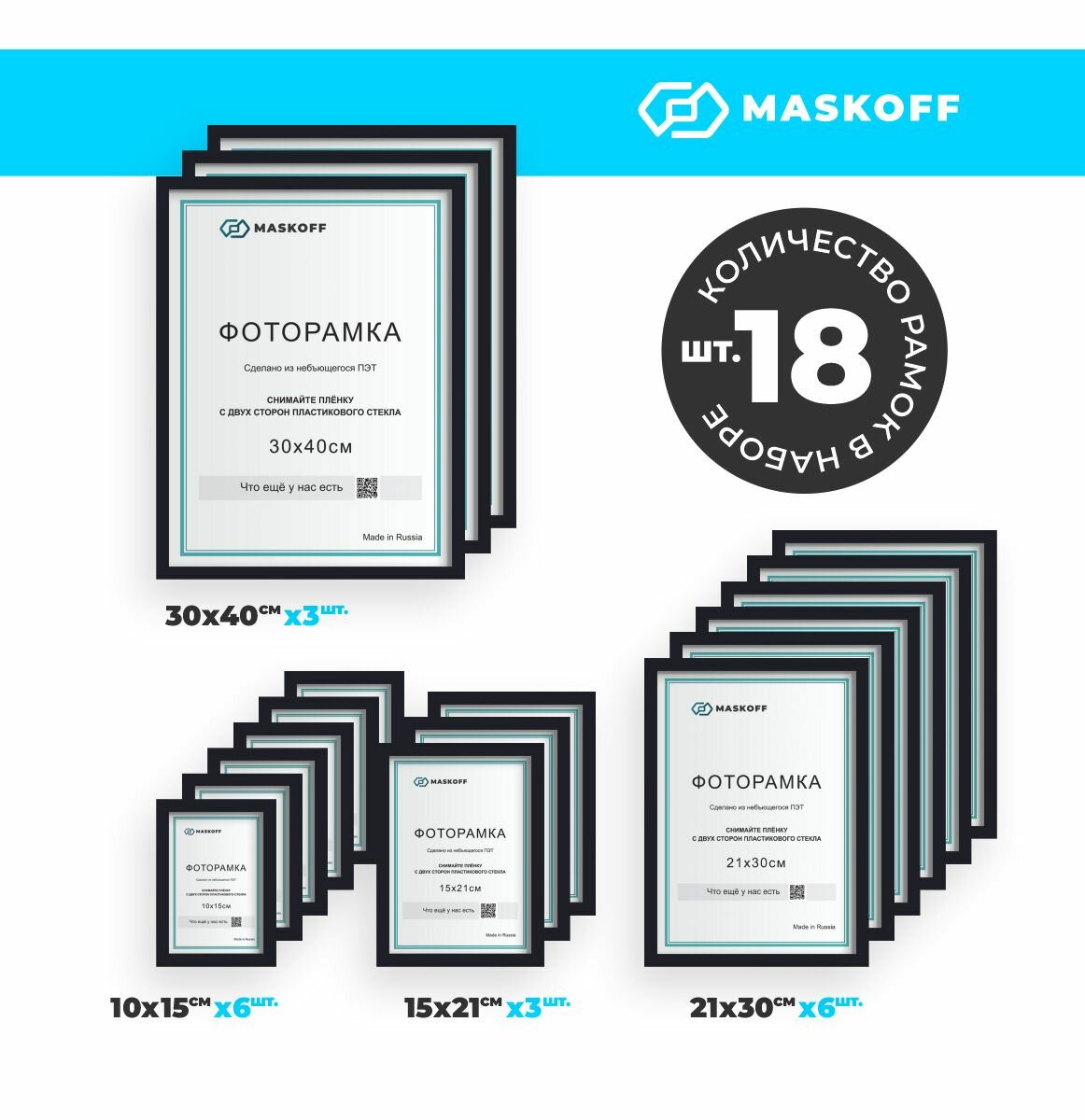 Купить Набор фоторамок на стену В коробке (гарантия целости!) рамки для фотографий, фоторамки для фотографий, комплект фоторамок, коллаж из фоторамок, фоторамки настенные, рамки небьющиеся (21х30, 15х21, 10х15, 30х40), черные, MaskOff, 18 шт. с доставкой по всей России.