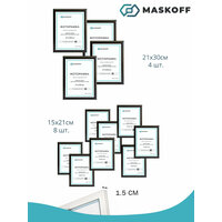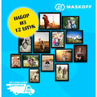 Купить Набор фоторамок на стену В подарочной коробке (гарантия целости!), рамки для фотографий, фоторамки для фотографий, комплект фоторамок, коллаж из фоторамок, фоторамки настенные, рамки для фото небьющиеся в наборе (21х30, 15х21), черные, MaskOff, 12 шт. с доставкой по всей России.
