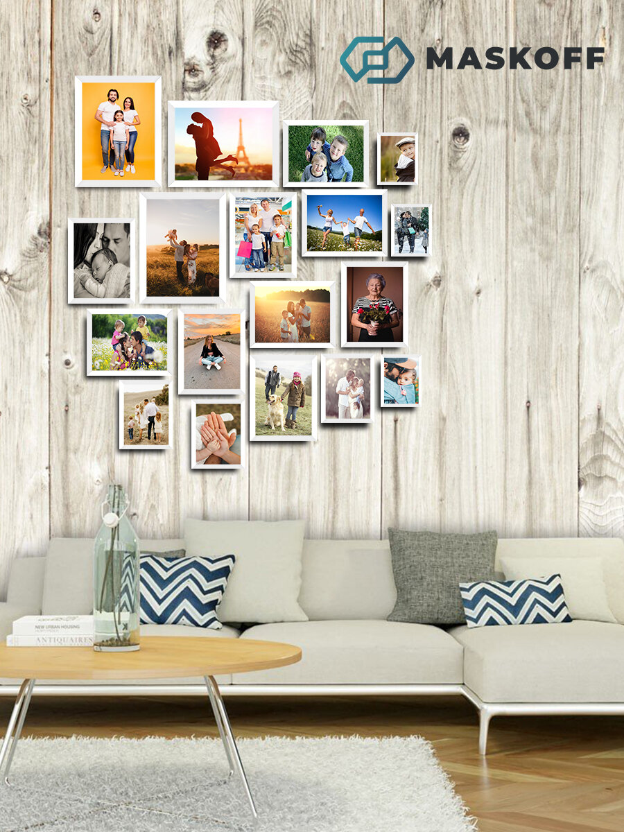 Купить Набор фоторамок на стену В подарочной коробке (гарантия целости!), рамки для фотографий, фоторамки для фотографий, комплект фоторамок, коллаж из фоторамок, фоторамки настенные, рамки небьющиеся (10 х 15 см, 15 х 21 см, 21 х 30 см), белые, MaskOff, 15 шт. с доставкой по всей России.
