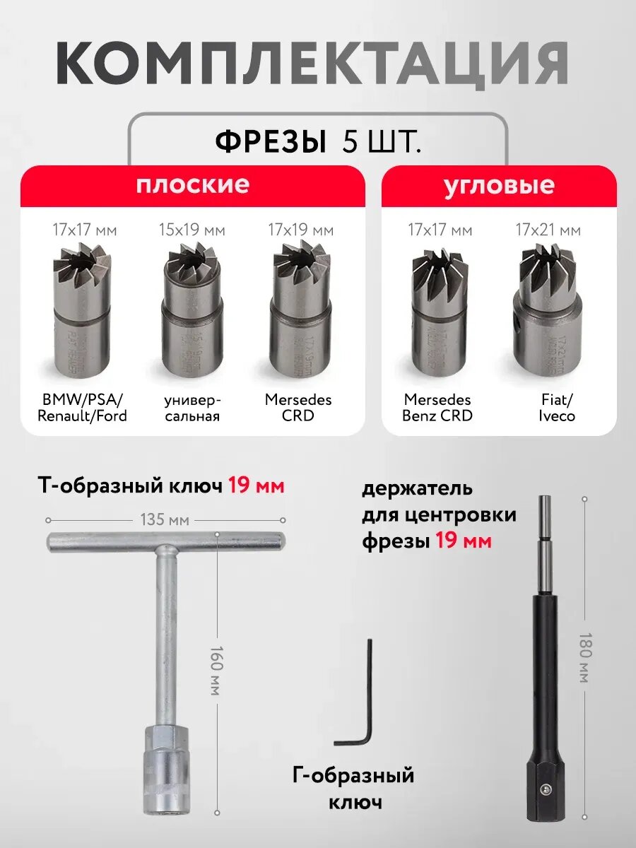 Применение: для восстановления рабочей поверхности посадочных мест дизельных форсунок для плотного прилегания форсунок; - для чистки посадочных мест дизельных форсунок от нагара, сглаживаются микронеровности и обеспечения герметичности посадки форсунок; - применяются для всех современных дизельных двигателей типа Common-Rail.