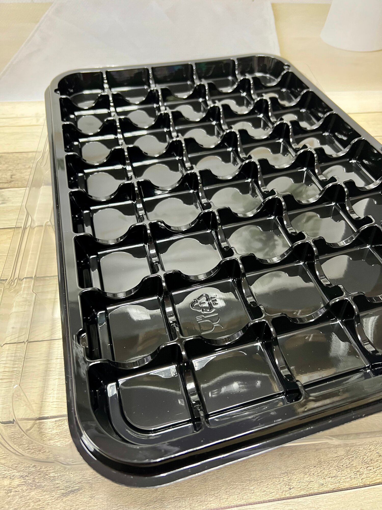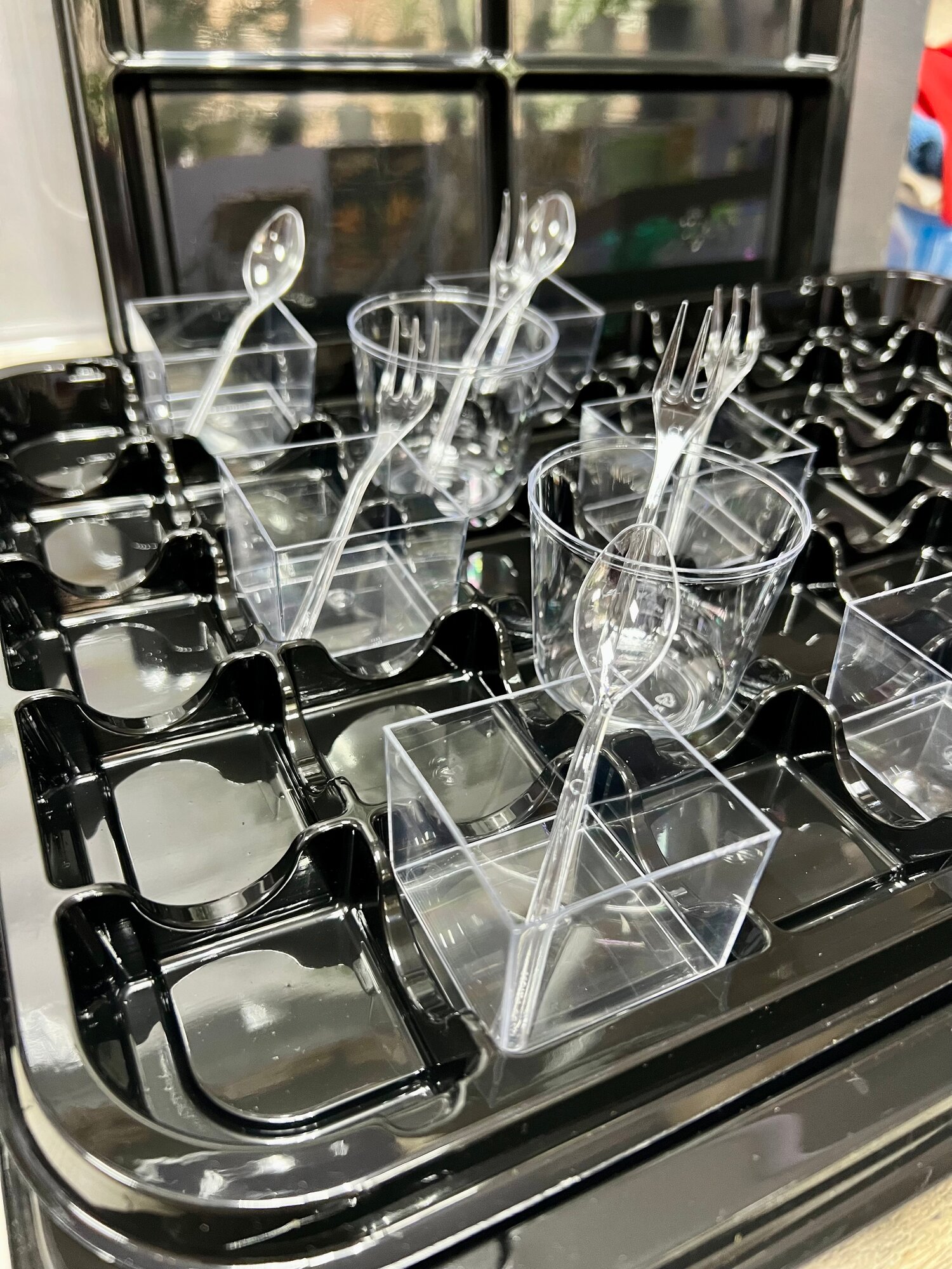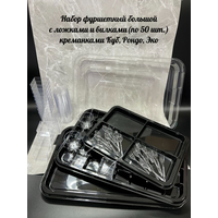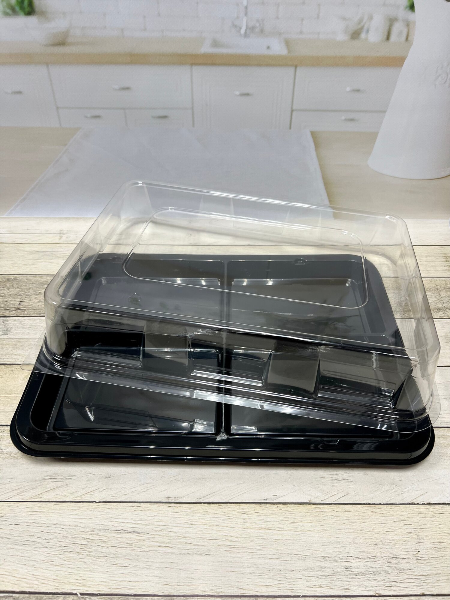 Купить Набор фуршетный большой № 5 Подносы большие, поднос 4 секции, крышки прозрачные, креманки Куб, Рондо, Эко, мини ложки, вилки (для закусок, сервировки, фуршета, кейтеринга, банкета) с доставкой по всей России.