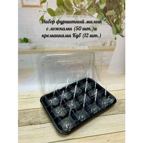 Купить «Набор фуршетный малый № 1» Поднос 260х177х28 мм 12 ячеек с прозрачной крышкой, креманки Куб, мини ложки (для закусок, сервировки, фуршета, кейтеринга, банкета) с доставкой по всей России. «Набор фуршетный малый № 1» Поднос 260х177х28 мм 12 ячеек с прозрачной крышкой, креманки Куб, мини ложки (для закусок, сервировки, фуршета, кейтеринга, банкета): сравнение цен, характеристики, фото, актуальное наличие и цены.