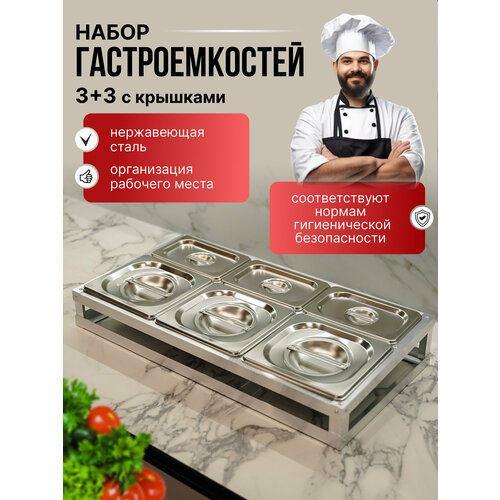 Купить Набор гастроемкостей из нержавеющей стали 3+3 с крышками с доставкой по всей России. Набор гастроемкостей из нержавеющей стали 3+3 с крышками: сравнение цен, характеристики, фото, актуальное наличие и цены.