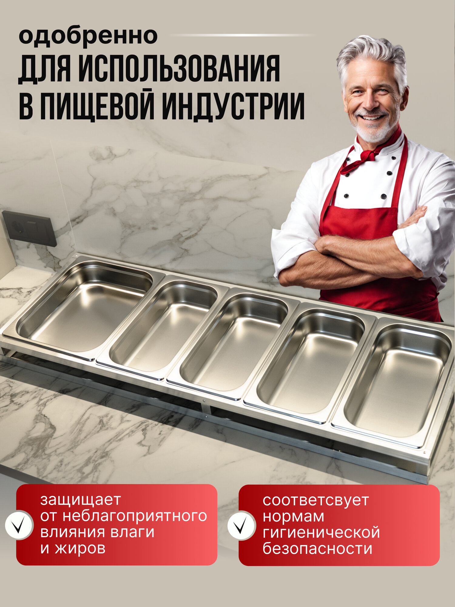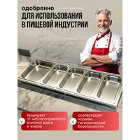 Набор гастроемкости 4+1 имеющиеся в ассортименте из нержавеющей стали с увеличенной прочностью и долговечностью. Данный материал хорошо защищает от неблагоприятного влияния влаги, жиров. Гастроемкости из нержавейки соответствуют нормам гигиенической безопасности, так как производятся из стали, одобренной для использования в пищевой индустрии. Емкости из полипропилена и поликарбоната менее прочны и долговечны, чем те, которые выполнены из нержавеющей стали.