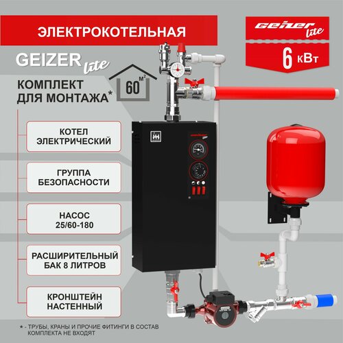 Набор GEIZER LITE на 6 кВт для сборки котельной: электрокотел GEIZER LITE с цирк. насосом, группой безопасности, расширительным баком и кронштейном: сравнение цен, характеристики, фото, актуальное наличие и цены.