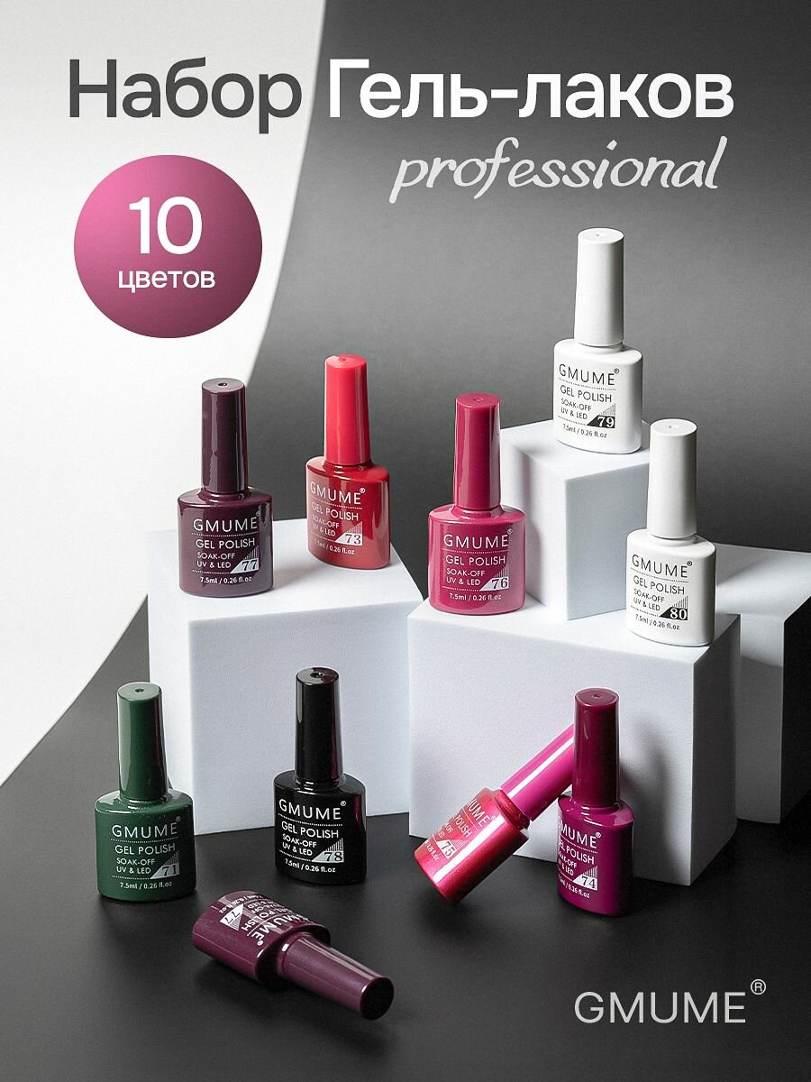 Набор профессиональных гель-лаков 10 цветов по 7.5 мл. Гель-лаки имеют плотную кремовую консистенцию с высоким пигментом, просты в работе, отлично подойдут для рисования. Верхний слой - липкий, что усиливает сцепку со следующим покрытием, топом и позволяет нанести элементы декора без дополнительного нанесения средства с липким слоем. Гели отлично самовыравниваются и не затекают на кутикулу. Не скатываются, не отслаиваются, не полосят - специальная формула средства позволяет лаку сливаться с предыдущим слоем, не меняя заявленного оттенка. Полимеризация в профессиональной UV и LED лампе 30-90 сек. (зависит от толщины нанесенного слоя). Вы можете создать свой уникальный и неповторимый дизайн. Наборы гель лаков отлично подойдут на подарок для подруги, девушки, мамы, для себя, сестры, коллеге на Новый год, День Рождения, 8 марта, день святого Валенетина и любой другой праздник.