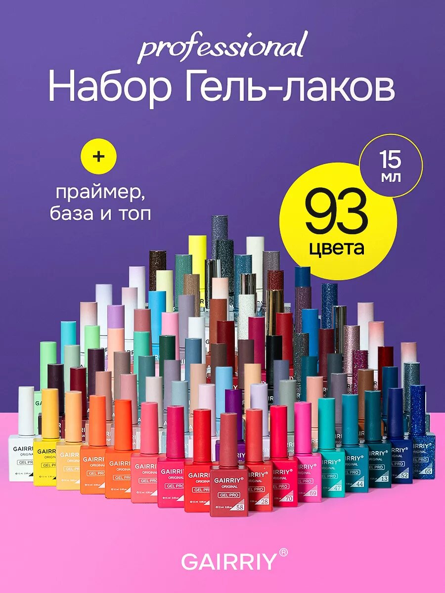 Набор профессиональных гель-лаков 93 цвета по 15 мл. Гель-лаки имеют плотную кремовую консистенцию с высоким пигментом, простоы в работе, отлично подойдут для рисования. Верхний слой - липкий, что усиливает сцепку со следующим покрытием, топом и позволяет нанести элементы декора без дополнительного нанесения средства с липким слоем. Гели отлично самовыравниваются и не затекают на кутикулу. Не скатываются, не отслаиваются, не полосят - специальная формула средства позволяет лаку сливаться с предыдущим слоем, не меняя заявленного оттенка. Полимеризация в профессиональной UV и LED лампе 30-90 сек. (зависит от толщины нанесенного слоя). Вы можете создать свой уникальный и неповторимый дизайн. Наборы гель лаков отлично подойдут на подарок для подруги, девушки, мамы, для себя, сестры, коллеге на Новый год, День Рождения, 8 марта, день святого Валенетина и любой другой праздник.