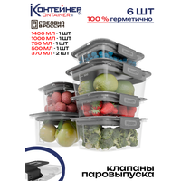 Новинка от бренда Контейнер&Container - набор герметичных контейнеров 6 штук с уникальным цветом крышек под "мрамор". Данный пластиковый набор контейнеров представляет собой идеальное решение для хранения продуктов и приготовления пищи. Он включает в себя 6 емкостей разного размера, которые можно использовать для заморозки, разогревания в СВЧ-печи, хранения в холодильнике или организации продуктов в кухне. Набор контейнеров из пластикового полимера для хранения и организации вашей еды. Специальные защелки с двух сторон крышки делают ёмкости для хранения герметичными, красивым и удобным решением для вашей кухни. Контейнеры легко открывать и закрывать, а защелки в поднятом состоянии открывают клапаны для выхода пара при разогреве в микроволной печи.