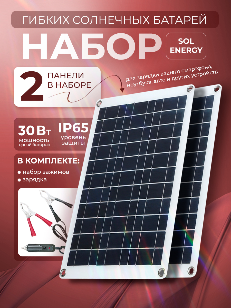 Купить Набор гибких солнечных батарей 60Вт Sol Energy 5В/18В (2 шт) с доставкой по всей России. Набор гибких солнечных батарей 60Вт Sol Energy 5В/18В (2 шт): сравнение цен, характеристики, фото, актуальное наличие и цены.