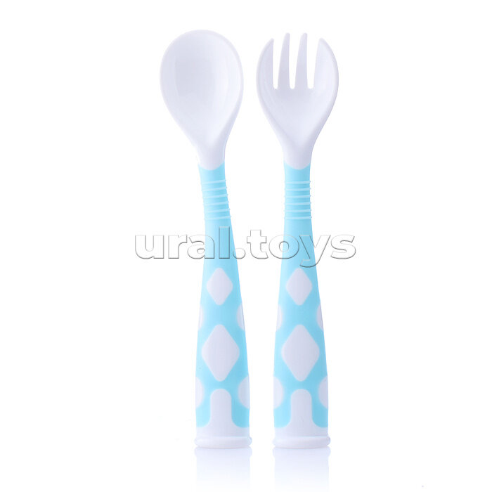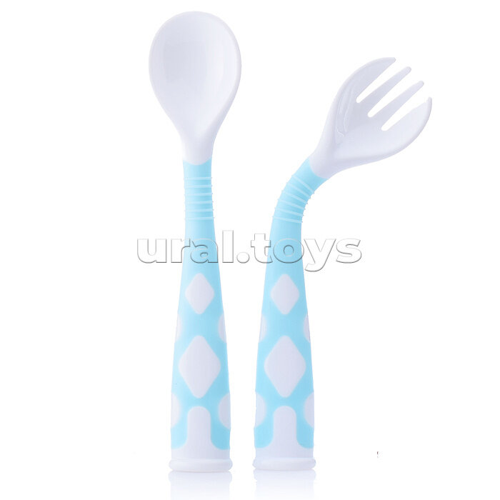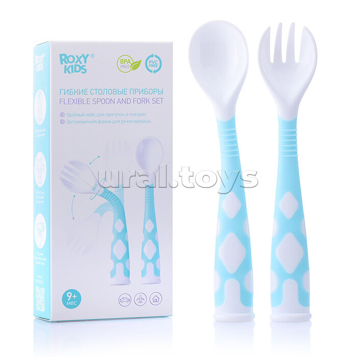 Купить Набор столовых приборов для детей ROXY-KIDS, цвет голубой, изогнутые ручки с доставкой по всей России.