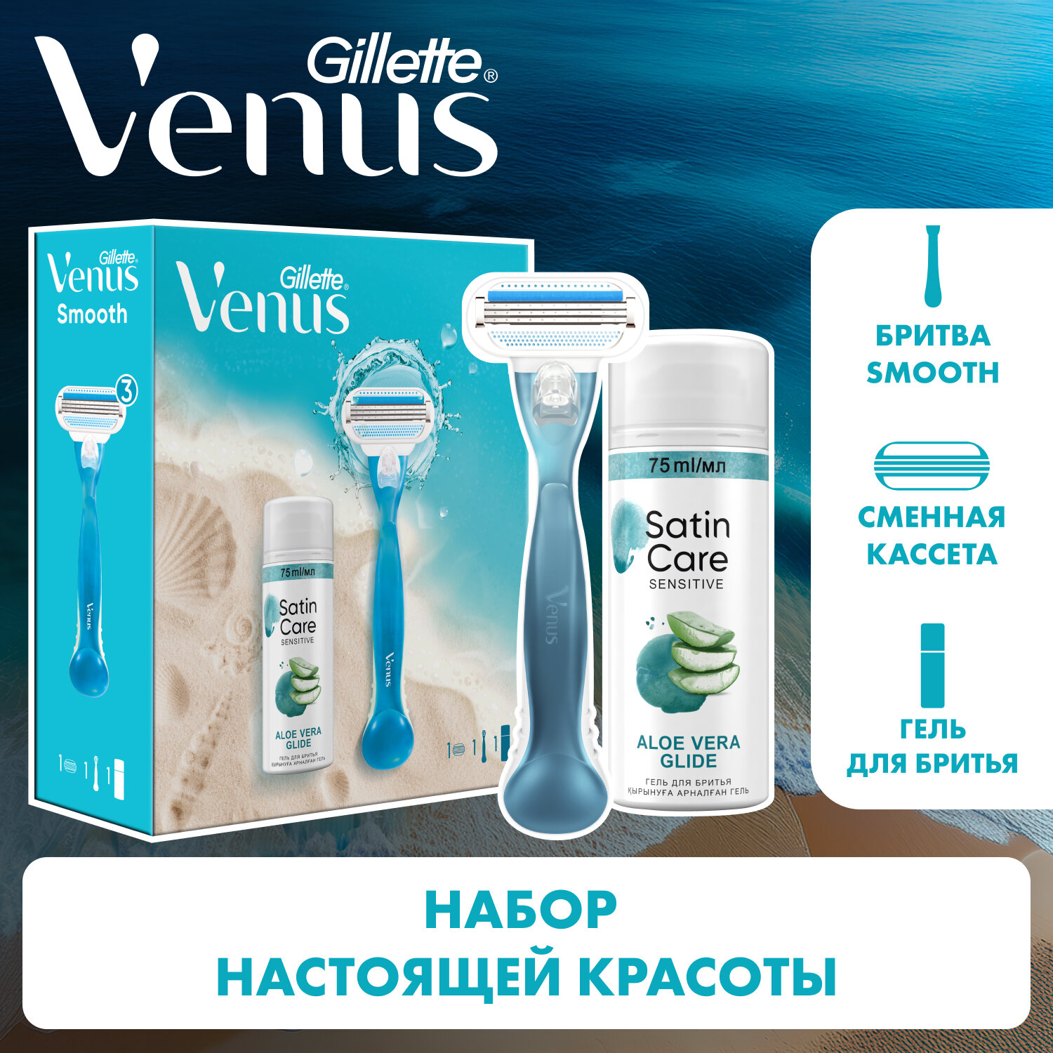 Купить Набор Gillette Venus Бритва с 1 сменной кассетой +SATIN CARE Гель для бритья, женский для чувствительной кожи, 75 мл с доставкой по всей России.