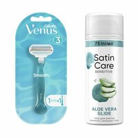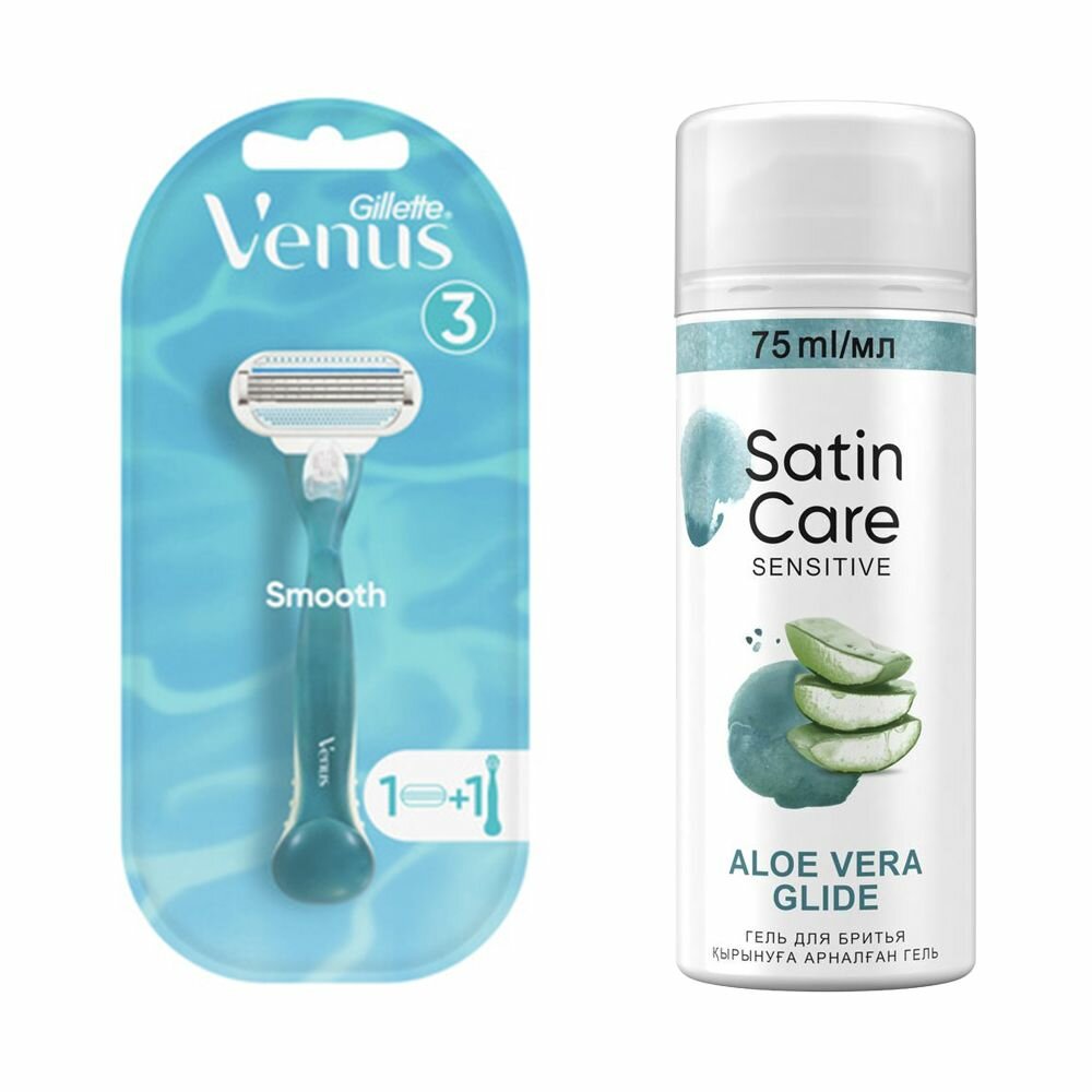 Набор Gillette Venus Бритва с 1 сменной кассетой +SATIN CARE Гель для бритья, женский для чувствительной кожи, 75 мл