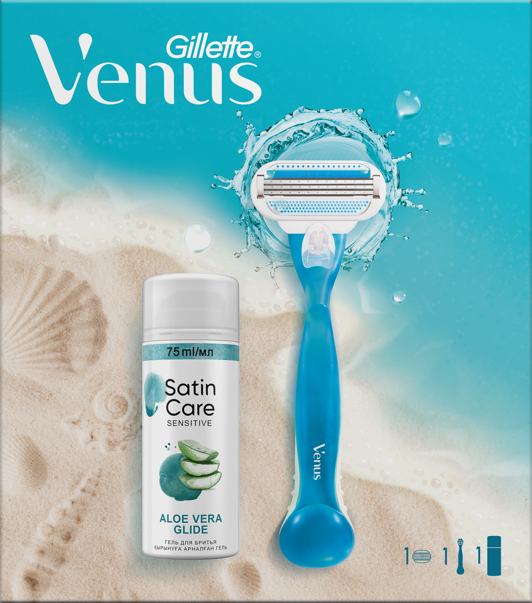 Набор Gillette Venus Бритва с 1 сменной кассетой +SATIN CARE Гель для бритья, женский для чувствительной кожи, 75 мл: сравнение цен, характеристики, фото, актуальное наличие и цены.