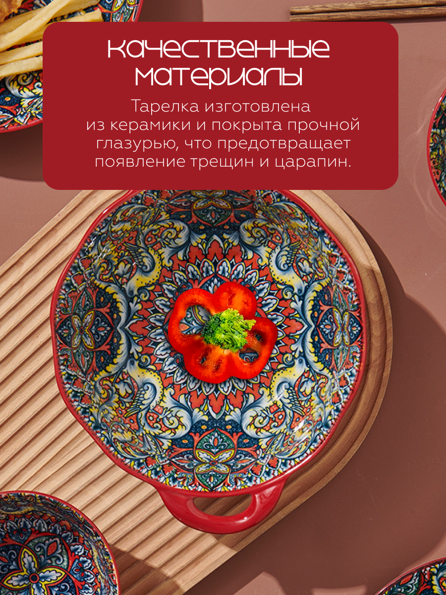 Керамика: Тщательно отобранная глина, бережно обработанная руками искусных мастеров, дарит глубокой посуде неповторимую теплоту и очарование.