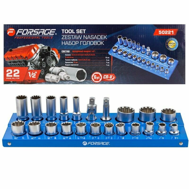 Купить Набор головок 1/2′, 22 предмета (универсальный профиль) Forsage с доставкой по всей России. Набор головок 1/2′, 22 предмета (универсальный профиль) Forsage: сравнение цен, характеристики, фото, актуальное наличие и цены.