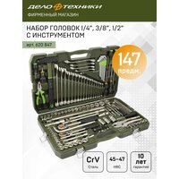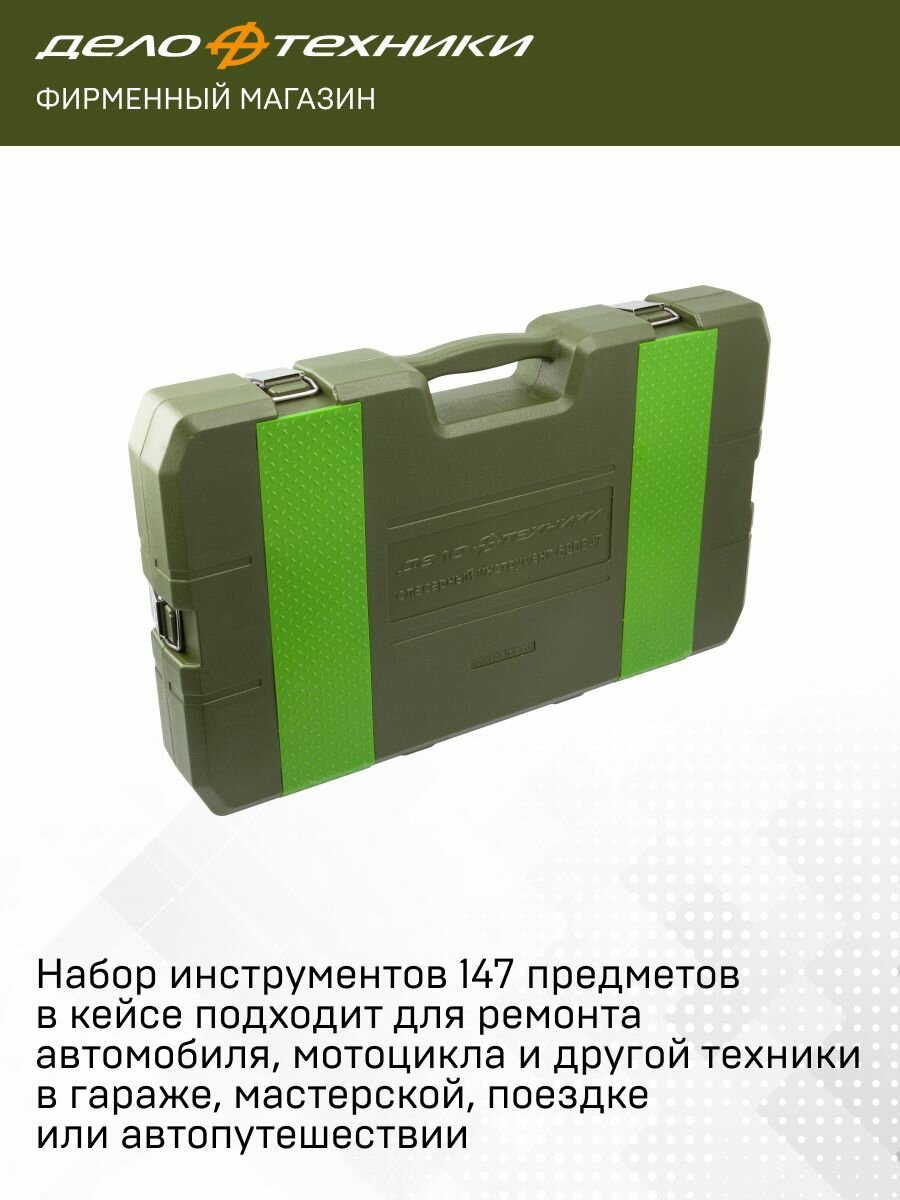 Набор включает в себя инструмент с присоединительным квадратом на 1/4”, 3/8”, 1/2”, что обеспечивает взаимозаменяемость головок и приводов любого из профилей. Таким образом увеличивается количество возможных вариантов подбора требуемой головки с учётом расположения крепежа и выбора привода необходимого размера.