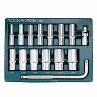 Набор торцевых 6-гр. головок 1/2", 15 предметов в ложементе - прочный и надежный инструмент, который подходит для использования с гайковертом. В наборе содержится 13 головок различных размеров из хромванадиевой стали, что гарантирует их высокую прочность, долговечность и надежность в использовании. Кардан шарнирный - вспомогательный инструмент для пневмогайковерта, он является дополнением к торцевым головкам. С помощью кардана можно откручивать и фиксировать крепежные изделия, расположенные в труднодоступных местах, или под неудобным для работы углом. Г-образный вороток позволяет легко и быстро закручивать и откручивать крепежные элементы, а также использовать различные насадки для работы с разными типами гаек и болтов. Его удобная форма позволяет работать в труднодоступных местах, а эргономичная рукоятка обеспечивает комфорт при использовании. Комплектация: головки торцевые шестигранные глубокие (10, 12, 13, 14, 15, 17, 19, 21, 22, 24, 27, 30, 32 мм.), вороток Г-образный 1/2", кардан 1/2", кейс.