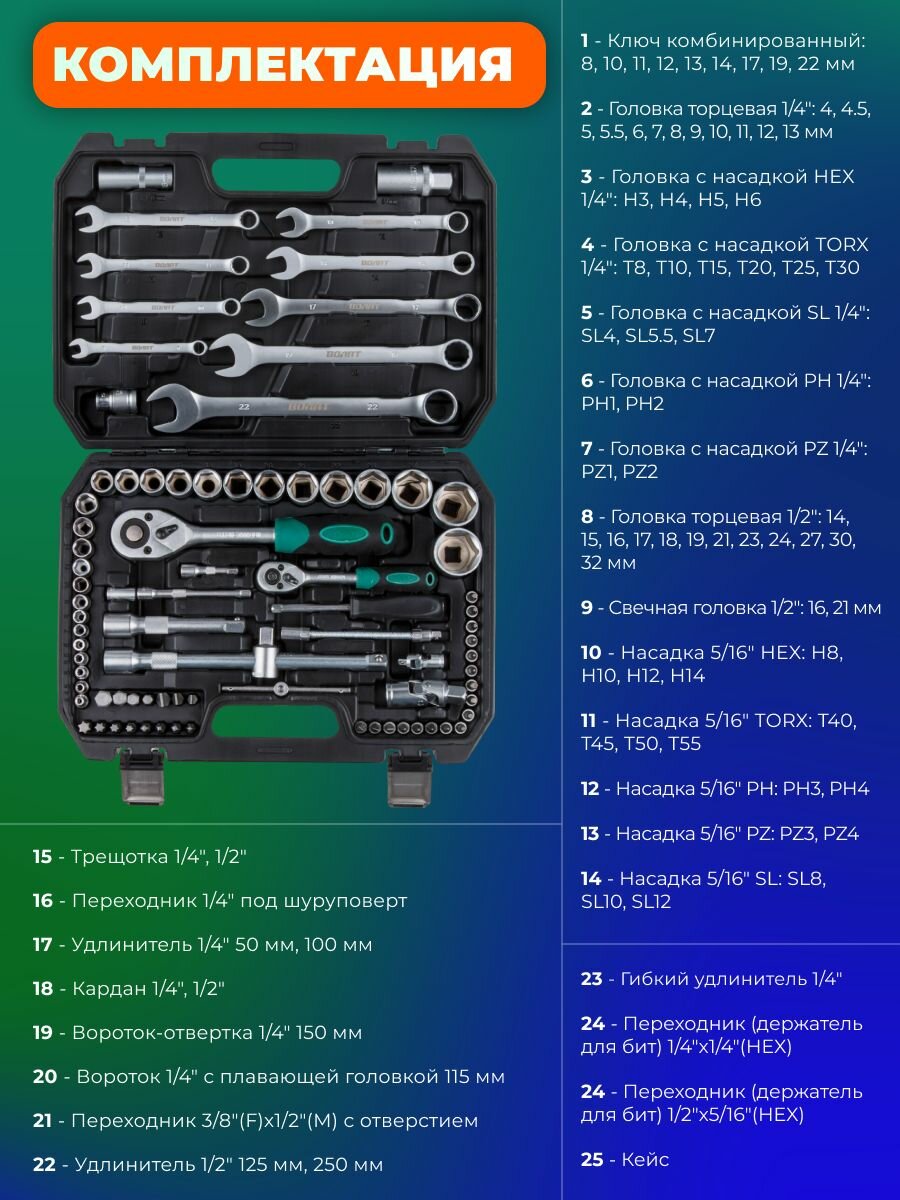 Купить Набор головок и ключей 82пр. Волат (1/4″, 1/2″, 6 граней) (18540-82) с доставкой по всей России. Набор головок и ключей 82пр. Волат (1/4″, 1/2″, 6 граней) (18540-82): сравнение цен, характеристики, фото, актуальное наличие и цены.