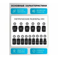Набор головок ударных глубоких 16 предметов 1/2″ 12гр. SIGMATOOL